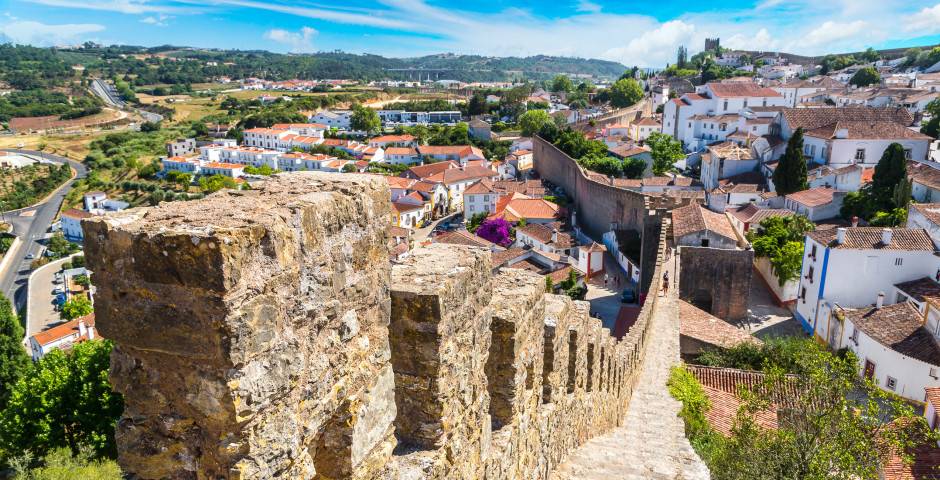 Le château que l’on voit aujourd’hui date du XIIIe siècle et a été construit sous le règne du roi Dom Dinis. La muraille s’étend sur 1,5 km autour d’Obidos et peut parfois a tteindre 13 mètres de haut. Alors que la construction de cette muraille remonte à l’époque des Maures (du VIIIe au XIe siècle), la muraille que les touristes visitent de nos jours ne date que du XVIIIe, car elle a été restaurée après le tremblement de terre dévastateur de 1755. Il est possible de faire le tour de la muraille à pied.